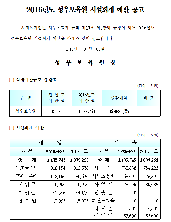 19-03-28 11:24 2016년 시설회계 예산 공고 페이지 정보 작성자 성우보육원 댓글 0건 조회 6,705회 본문 2016년 시설회계 예산 공고 목록 댓글목록 댓글목록 등록된 댓글이 없습니다.