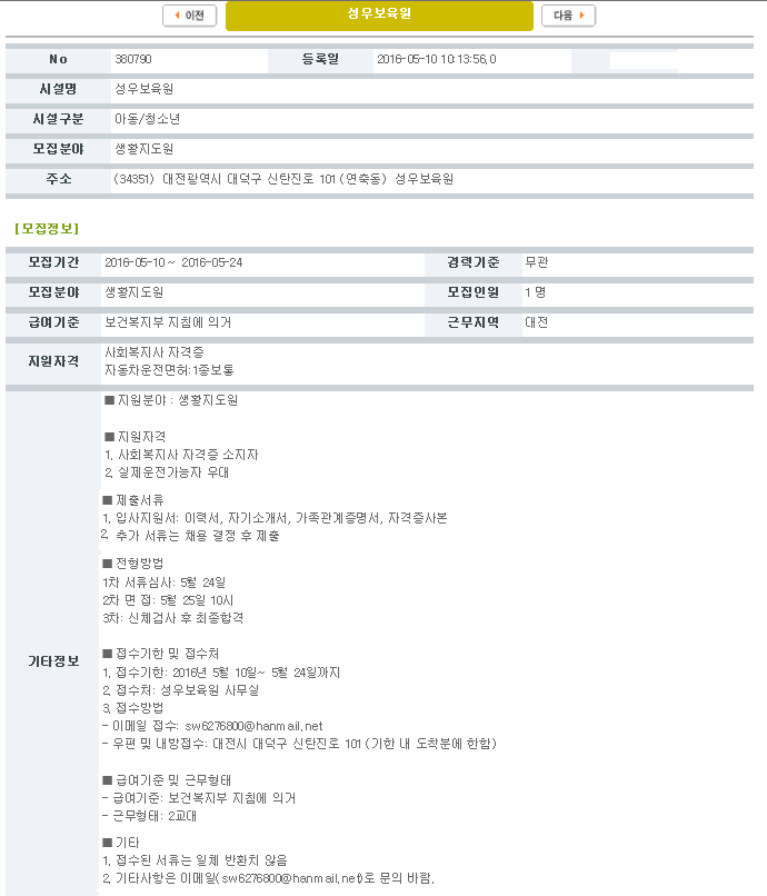 19-03-28 11:28 채용공고(생활지도원 모집) 페이지 정보 작성자 성우보육원 댓글 0건 조회 8,401회 본문 (생활지도원 모집) 목록 댓글목록 댓글목록 등록된 댓글이 없습니다.