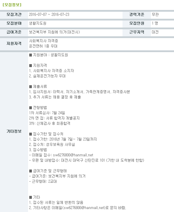 19-03-28 11:31 (채용공고)생활지도원 모집 페이지 정보 작성자 성우보육원 댓글 0건 조회 7,767회 본문 생활지도원 모집 목록 댓글목록 댓글목록 등록된 댓글이 없습니다.