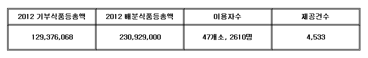2012년도 대덕구기초푸드뱅크 사업실적