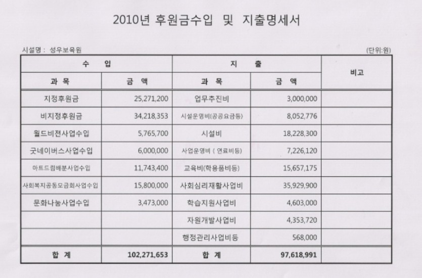 성우보육원 2010년 후원금 수입 및 지출명세서 작성일 19-03-28 10:49 페이지 정보 작성자성우보육원 조회 7,608회 댓글 0건 본문 2010년 후원금 수입 및 지출명세서 댓글목록 댓글목록 등록된 댓글이 없습니다.