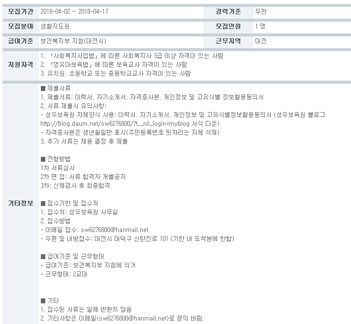(공고) 생활지도원 모집 > 공지사항