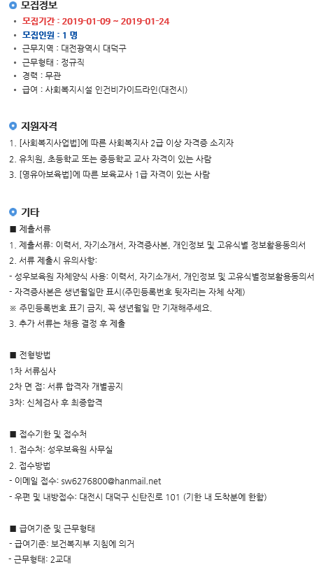 19-03-28 11:48 (공고) 생활지도원 모집 페이지 정보 작성자 성우보육원 댓글 0건 조회 7,721회 본문 생활지도원 모집 ※ 접수된 서류는 일체 반환치 않음 복지넷(https://www.bokji.net/job/off/01_01.bokji)의 첨부문서 활용 목록 댓글목록 댓글목록 등록된 댓글이 없습니다.