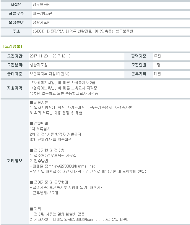 채용공고) 생활지도원모집 > 공지사항