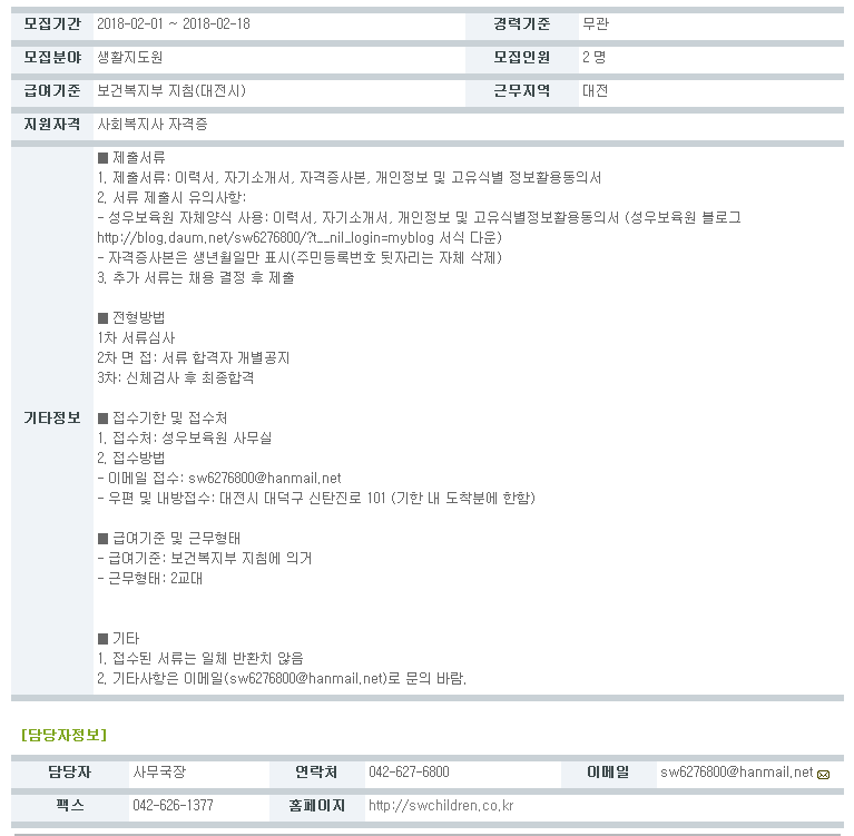 19-03-28 11:43 (공고)생활지도원 모집 페이지 정보 작성자 성우보육원 댓글 0건 조회 7,114회 본문 (공고)생활지도원 모집 목록 댓글목록 댓글목록 등록된 댓글이 없습니다.