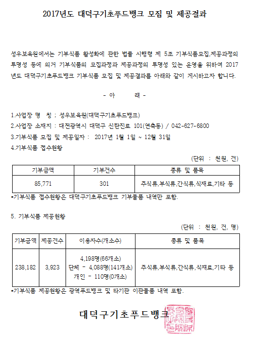 19-03-28 11:43 2017년도 대덕구기초푸드뱅크 모집 및 제공결과 페이지 정보 작성자 성우보육원 댓글 0건 조회 7,059회 본문 2017년도 대덕구기초푸드뱅크 모집 및 제공결과 목록 댓글목록 댓글목록 등록된 댓글이 없습니다.