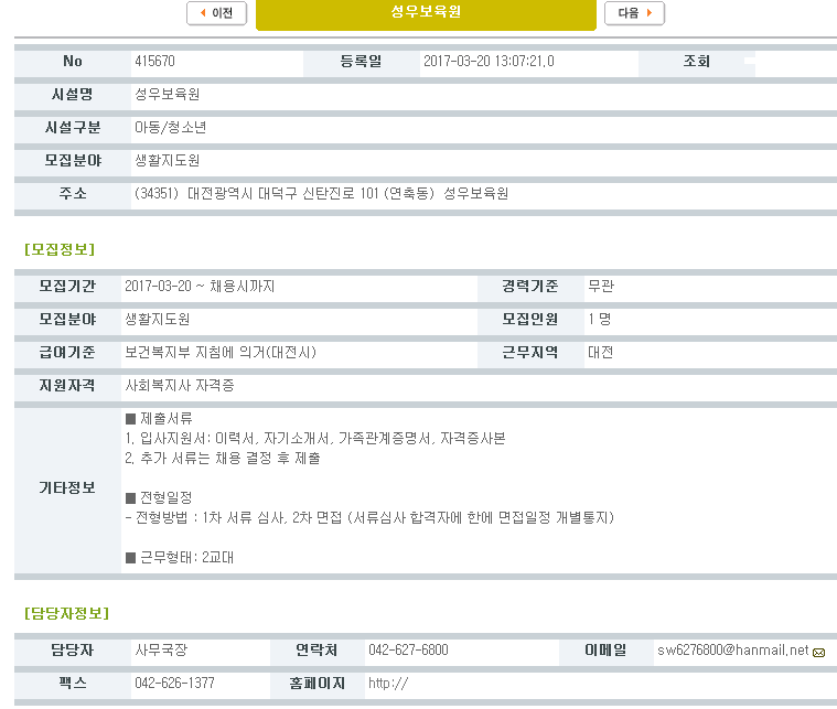19-03-28 11:37 (채용공고)생활지도원 모집 페이지 정보 작성자 성우보육원 댓글 0건 조회 7,596회 본문 생활지도원 모집 목록 댓글목록 댓글목록 등록된 댓글이 없습니다.