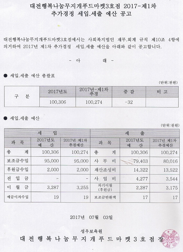 19-03-28 11:39 대전행복나눔무지개푸드마켓3호점 2017-1차 추가경정 세입.세출 예산서 페이지 정보 작성자 성우보육원 댓글 0건 조회 7,226회 본문 대전행복나눔무지개푸드마켓3호점 2017-1차 추가경정 세입.세출 예산서 목록 댓글목록 댓글목록 등록된 댓글이 없습니다.