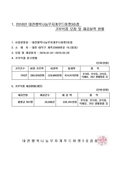 19-03-28 11:36 2016년 대전행복나눔무지개푸드마켓3호점 기부식품 모집 및 제공실적 현황 페이지 정보 작성자 성우보육원 댓글 0건 조회 7,093회 본문 2016년 대전행복나눔무지개푸드마켓3호점 기부식품 모집 및 제공실적 현황 목록 댓글목록 댓글목록 등록된 댓글이 없습니다.