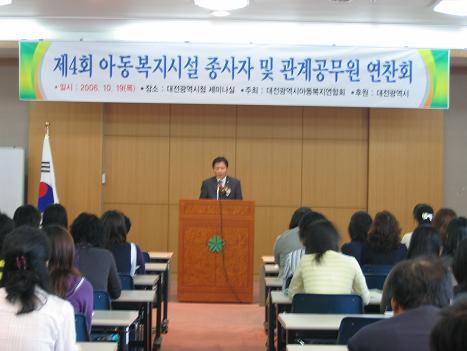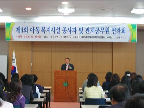 2006.10.20 10월 19일 아동 복지시설 종사자 및 관계 공무원 연찬회 페이지 정보 작성자 성우보육원 댓글 0건 조회 2,171회 본문 10월19일(목요일)아동 복지시설 종사자 및 관계 공무원 연찬회가 시청 세미나 실에서 있었습니다. 목록 댓글목록 댓글목록 등록된 댓글이 없습니다.