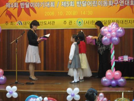 2006.10.22 10월 20일 반달이야기 대회 페이지 정보 작성자 성우보육원 댓글 0건 조회 2,048회 본문 10월20일(금요일)반달 동화구연이 안산도서관 시청각실 1층에서 있었습니다. 목록 댓글목록 댓글목록 등록된 댓글이 없습니다.