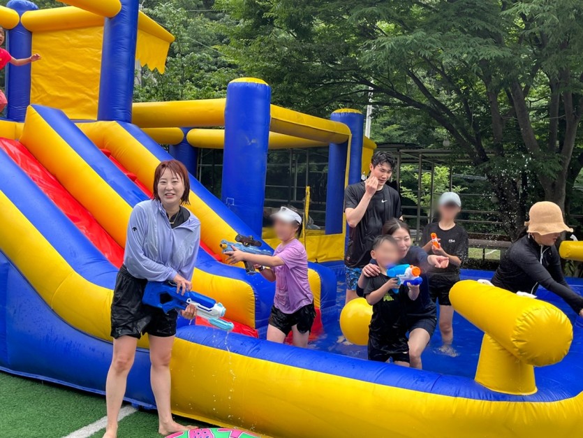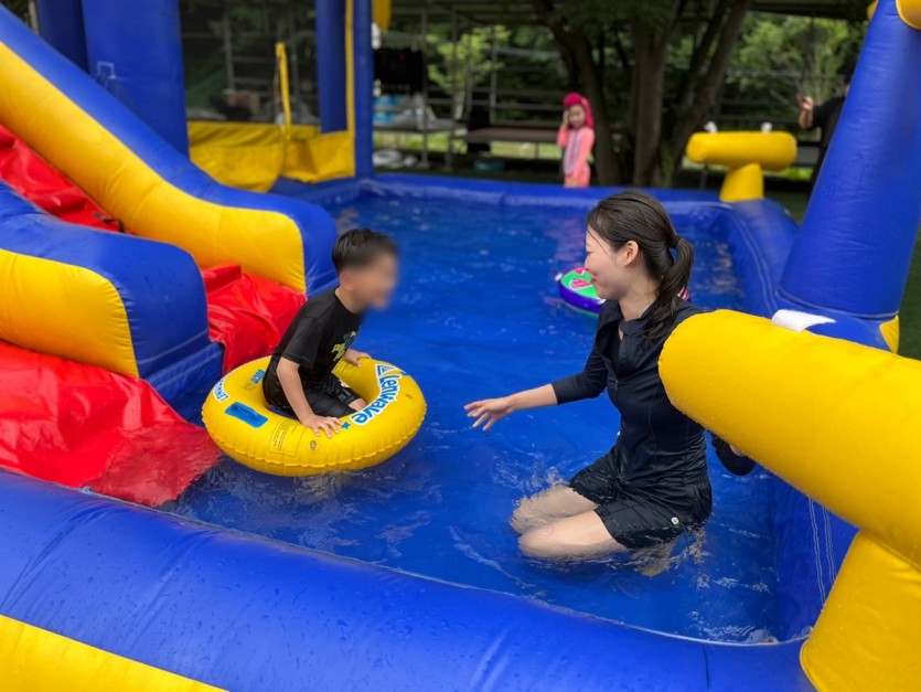 우리 아동들 성우프렌즈 봉사자분들과 물총놀이, 미끄럼틀 타기 등