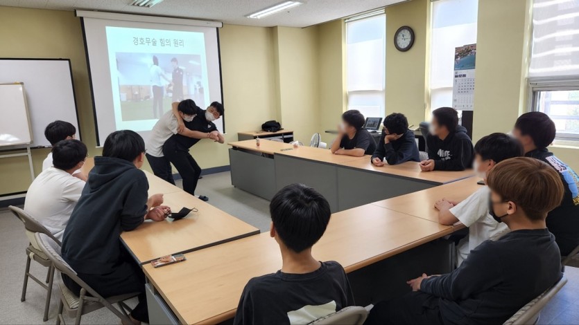 드림 진로교육센터에서 이명환 강사님 오셔서 중·고등 남학생 대상으로 경호원 직업체험 프로그램을 진행하였습니다.