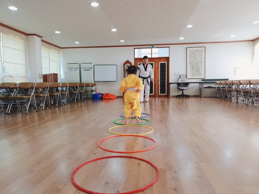 허리 손 차!차! 사랑합니다! 인사하며 관장님께 배우는 태권슐레는 아이들이 활발하게 뛰어놀며 신나게 활동하는 시간입니다.