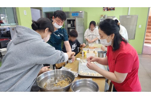 엄기석 권사님 내외분 오셔서 만두 만들기 봉사 진행해 주셨습니다♥ 고등학생 아동…