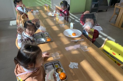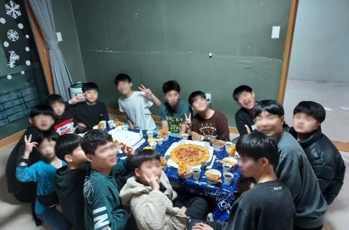 아동들이 후원자님께 감사한 마음을 가지고 떡볶이와 돈까스를 맛있게 먹으며 2021년의 마지막 날 …