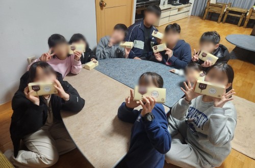 쎄트렉 아이에서 성우 아동들에게 고소한 호두 초코칩 쿠키와 롤케익 음료수를 후원…