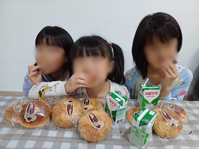 아이들은 후원해 주신 빵을 맛있게 나누어 먹으며 밝은 웃음과 즐거움이 가득한 시간을 보냈습니다.