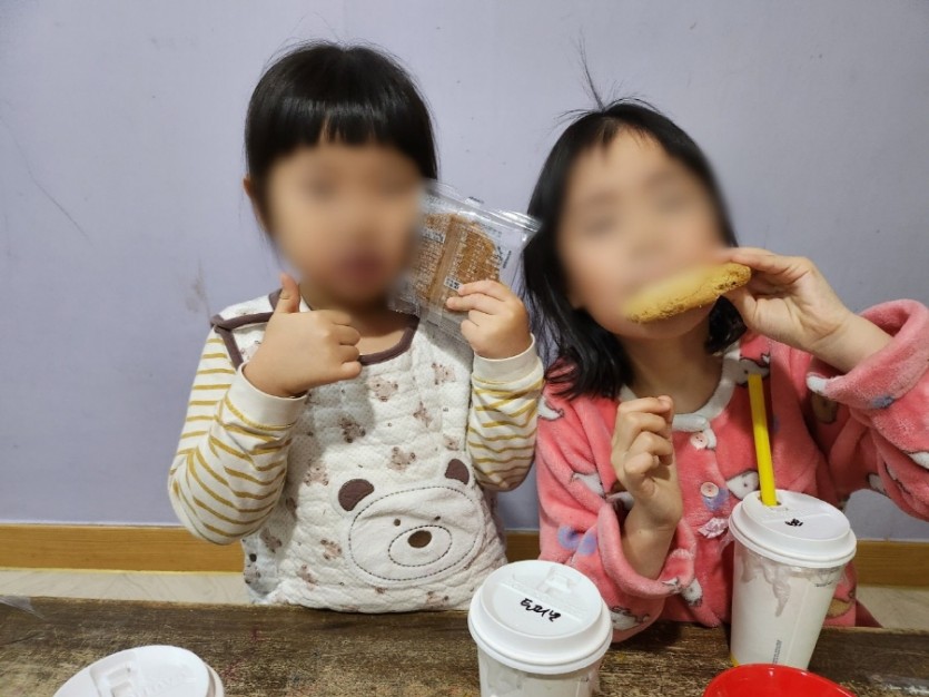 성우 아이들도 음료와 빵을 먹으며 즐겁게 담소도 나누고