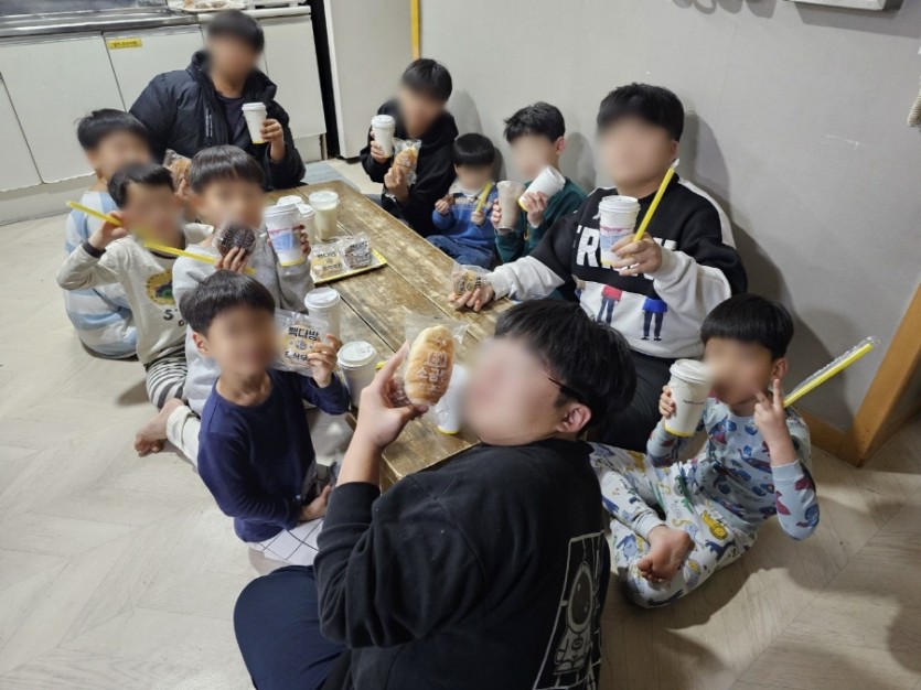 성우 아동들이 맛있는 음료와 빵을 먹을 수 있도록 후원해 주신