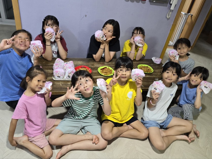 아동들의 위해 맛있는 햄버거를 후원해 주신